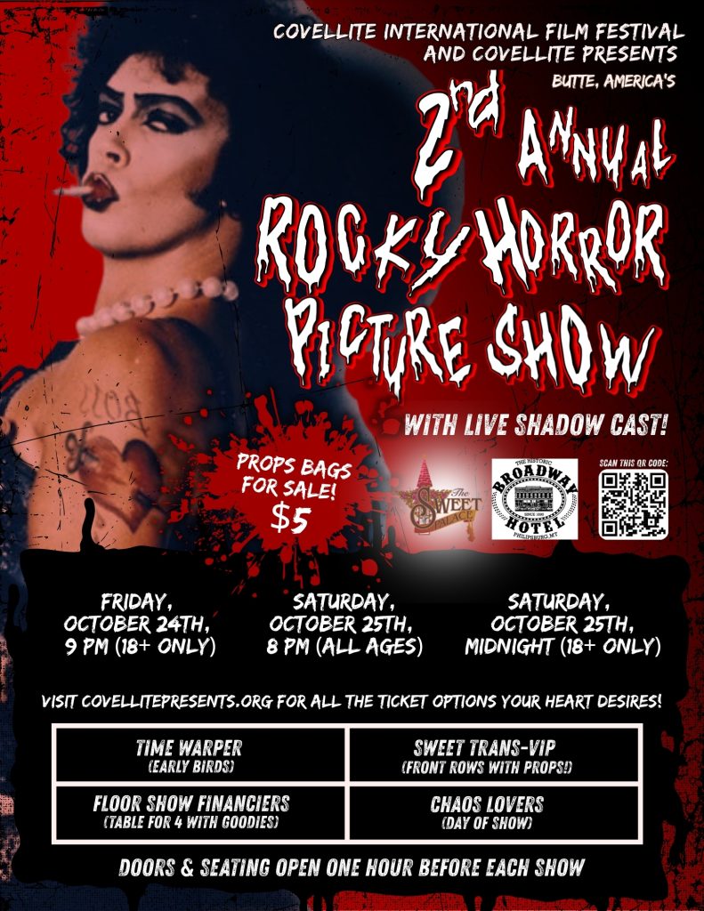 Originally built as the First Presbyterian Church in 1896, The Covellite Theatre in Uptown Butte, Montana is a medium-capacity (350 seat) proscenium stage venue that hosts live music, film screenings, weddings, festivals, live theatre, and more. The Uptown Lounge on the ground floor is an intimate (150 capacity) scene for live music and parties, with a bar, cabaret seating, and a black box stage. In addition to weekly events, Covellite Presents produces the annual Covellite International Film Festival, Butte’s hometown film fest.